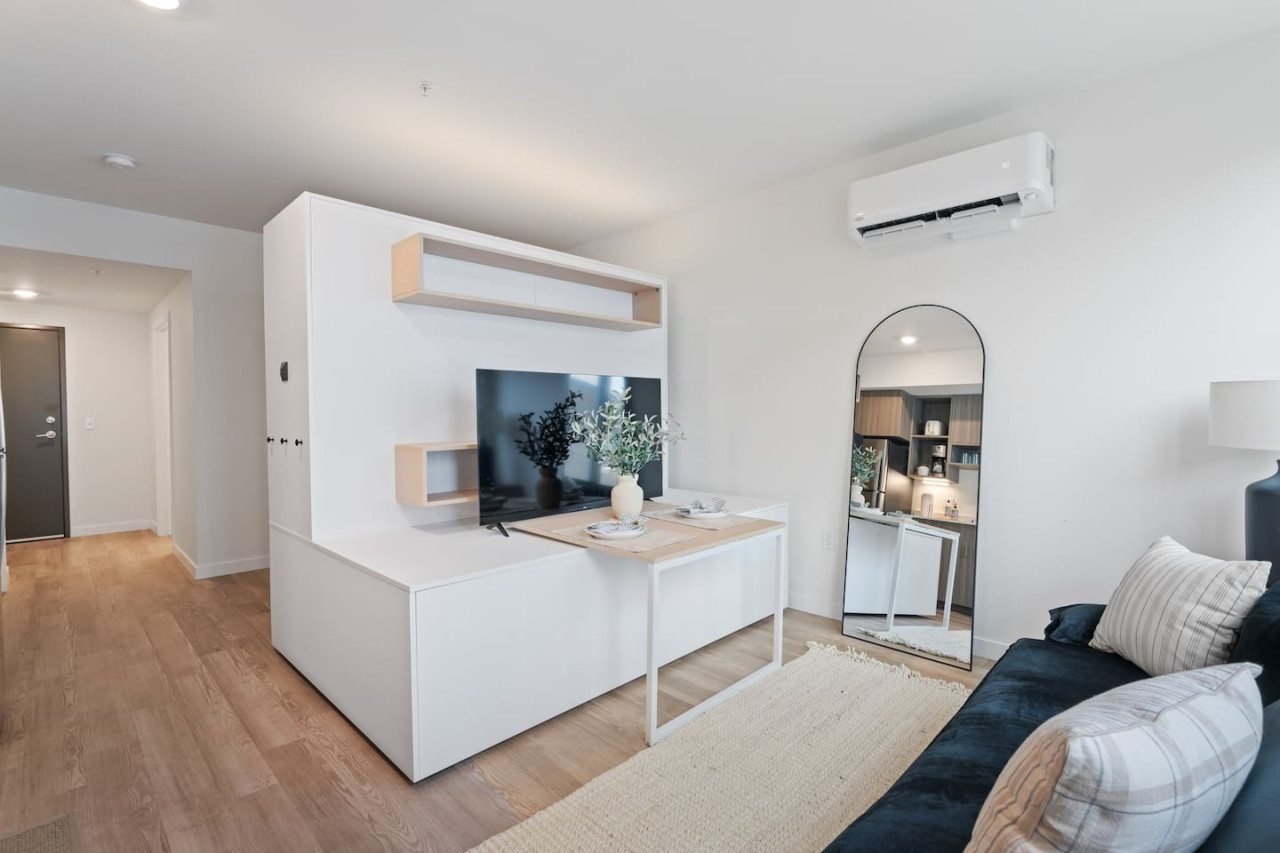 City central studio apartment in upscale well equiped building. This unit features 1 queen bed and pull out sofa. Building has an outside and inside lounge with games and tvs. Also comes with a gym so you don’t have to miss any workout days! 5 min walk to the Spokane Convention center and INB performing arts center. 15 min walk to Washington State University (GO COUGARS), WSU college of nursing, the grayhoud bus station and the beautiful Centennial walking trail.